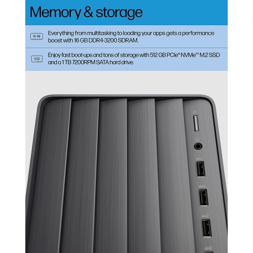 惠普 ENVY 台式电脑,英特尔酷睿 i7-10700,16 GB 内存,1 TB 硬盘和 512 GB 固态硬盘存储,Windows 10 Pro(TE01-1254,2020 型号)