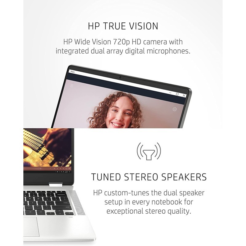 HP Chromebook x360 14a 2 合 1 笔记本电脑,Intel Pentium Silver N5000 处理器,4 GB RAM,64 GB eMMC,14 英寸高清显示屏,Chrome OS,带网络摄像头和双麦克风,工