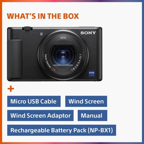 Sony 索尼 ZV-1 数码相机 内容创作者,Vlogging和YouTube 带翻转屏幕,内置麦克风,4K HDR 视频,触摸屏显示,实时视频流,网络摄像头