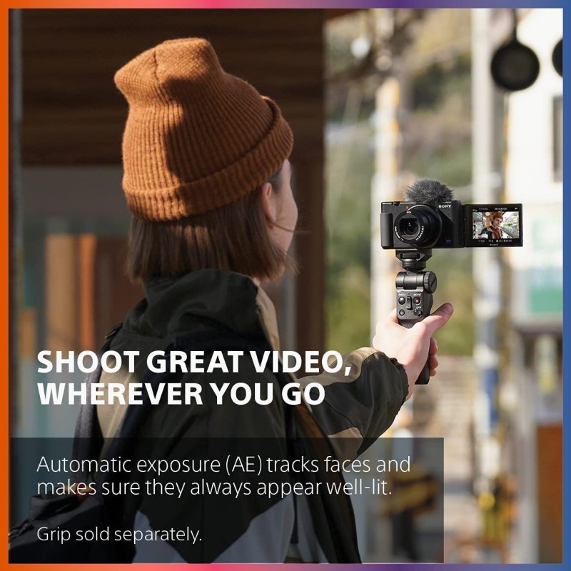 Sony索尼 ZV-1数码相机,内容创作者Vlogging和YouTube,带翻转屏幕,内置麦克风,4K HDR 视频,触摸屏显示,实时视频流,网络摄像头